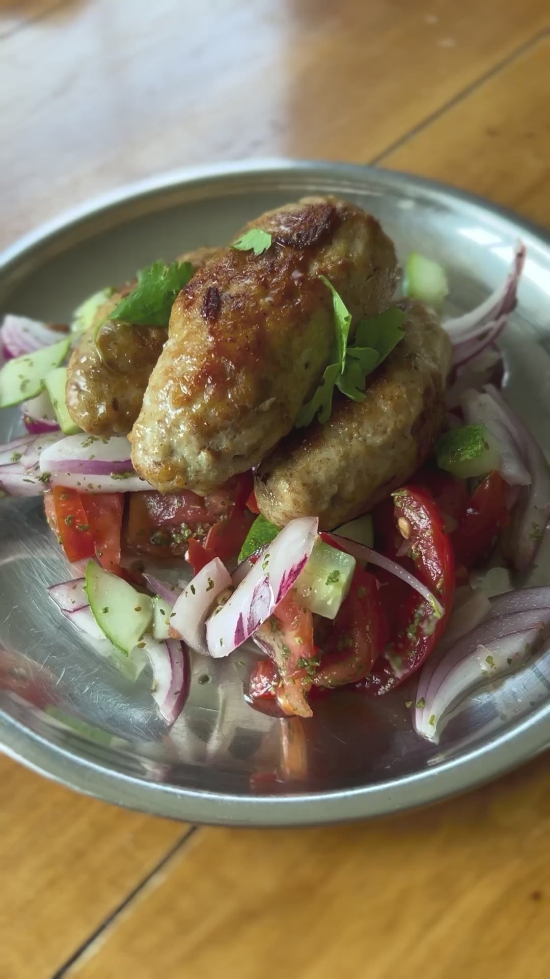 In a bowl mix everything together. Form ground chicken in oblong kebabs. Add oil to a large saute pan on medium heat and cook kebabs for 5-6 minutes on each side, always turning so all sides can brown. Cook kebabs for a total of 10 minutes on a pan. Serve warm.