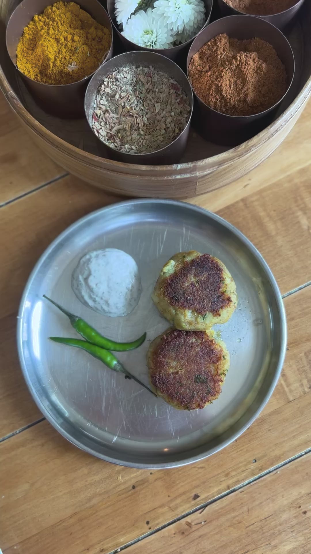 In a large saute pan, add oil and pan fry each tikki for 3 minutes on both sides on medium heat. For serving, mix yogurt with cilantro chutney and enjoy!