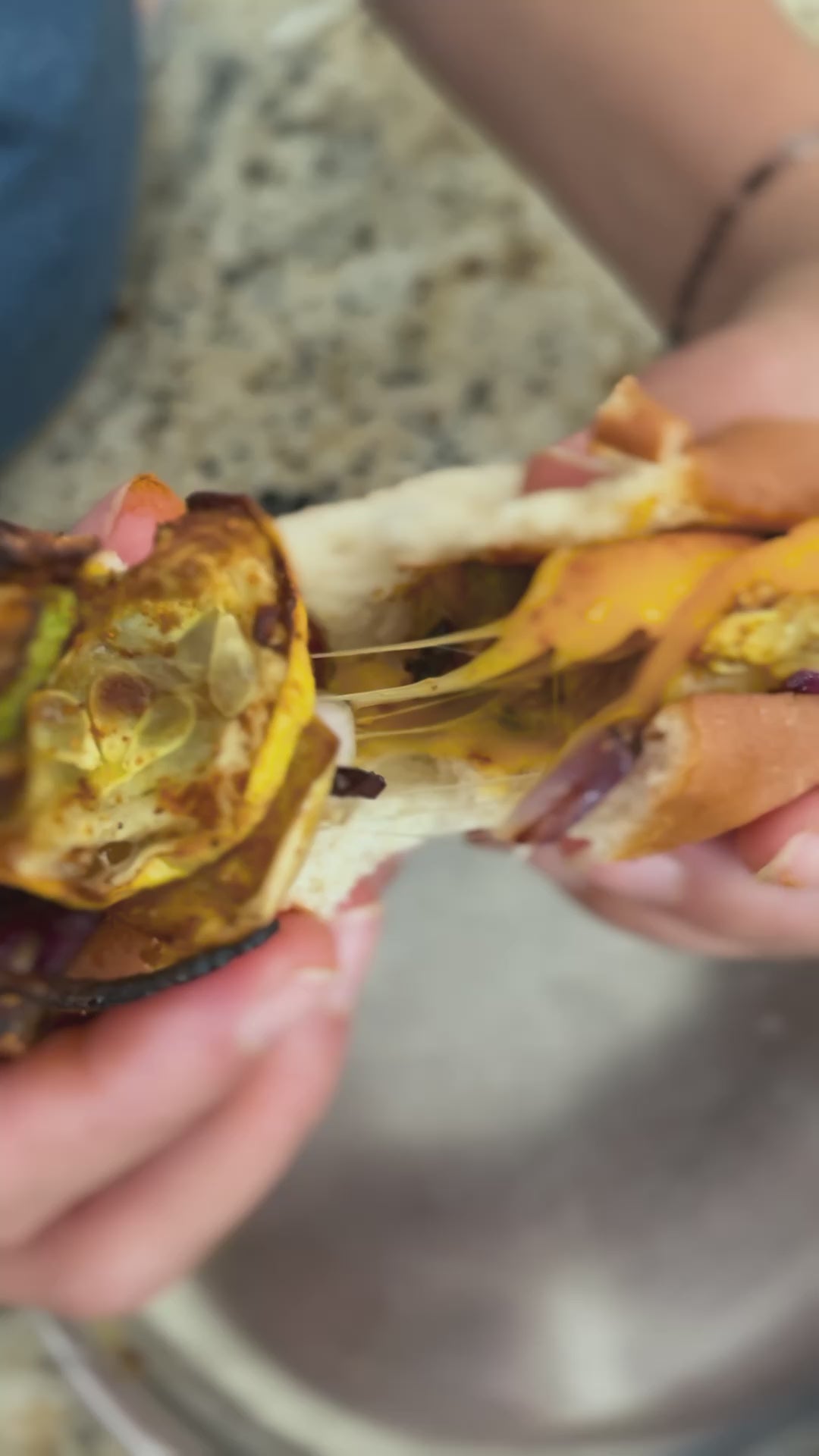 Turn the stove off and add the 2 slices of cheese while the veggies are warm.