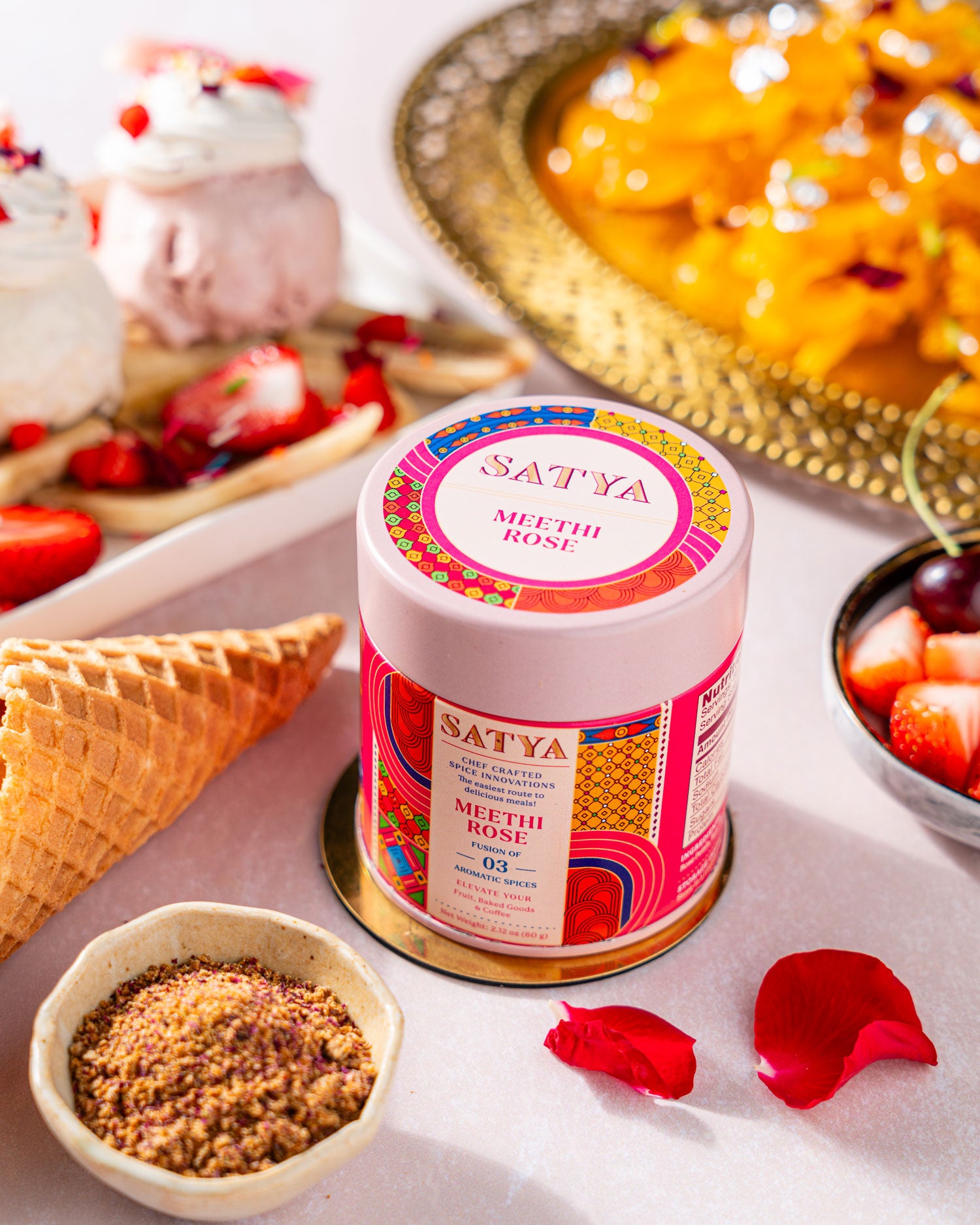 Meethi Rose is my favorite Satya spice -- and I've tried them all now. I made the recipe on the can, sprinkling meethi rose on pound cake and strawberries, with whipped cream. Delicate, floral, exotic!